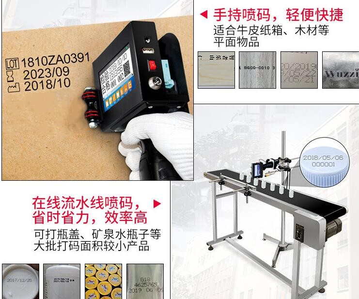 海鹞手持式噴碼機廣泛用于木工闆、紙箱、中纖闆、線纜、石材、輕鋼龍骨、金屬、鋁箔、塑料等材質表面噴碼标識,機器輕便小巧,操作簡單,特别适合小批量噴碼的客戶。